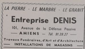 Au 101, Entreprise DENIS, Travaux funéraires d'art et d'architecture