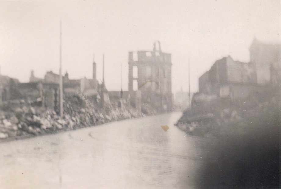 Photographie 1940 : Quartier Saint-Jacques, le mur d'angle encore dressé est celui de la Fontaine Saint Jacques