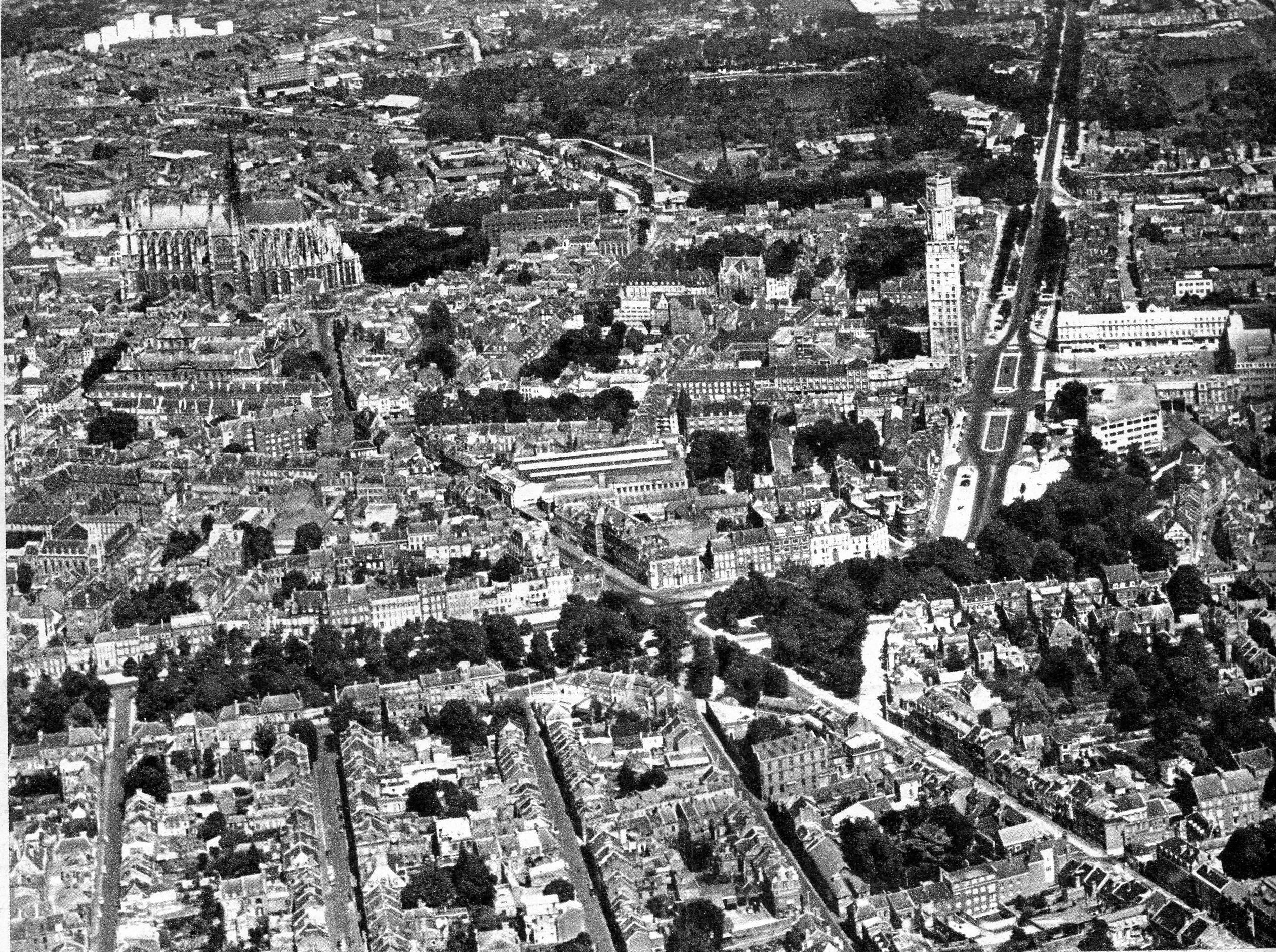 Vue aérienne d'Amiens parue dans la vie du rail en 1960