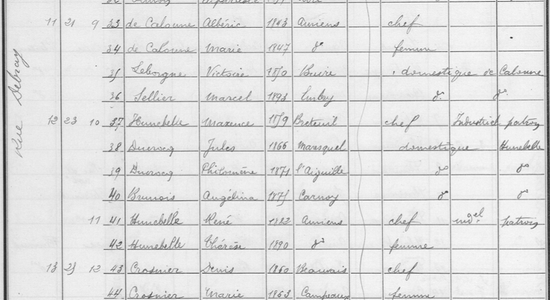 Recensement Amiens 1911 Sud-Ouest, rue DEBRAY page 308